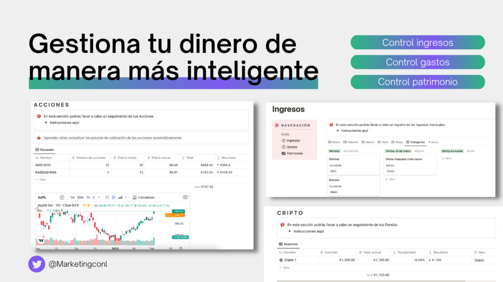 Tendrás una idea clara de cuánto dinero ganas y gastas cada mes. Esto te ayudará a tomar decisiones más inteligentes sobre cómo gastar o invertir tu dinero. Puedes establecer presupuestos en cada gasto y ver si te has pasado de la raya o no automáticamente.